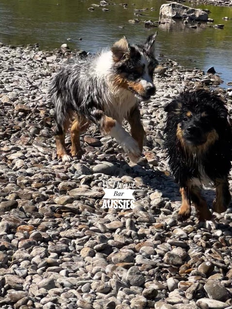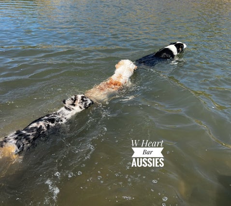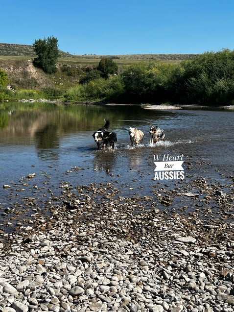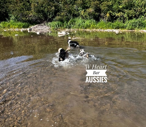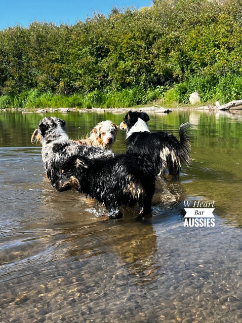 Discover the joy and benefits of our Aussies' field trips to the river. At W Heart Bar Aussies, we believe in providing experiences that enhance their health, temperament, and training. These trips are a highlight in our dogs' lives, contributing to their overall well-being.